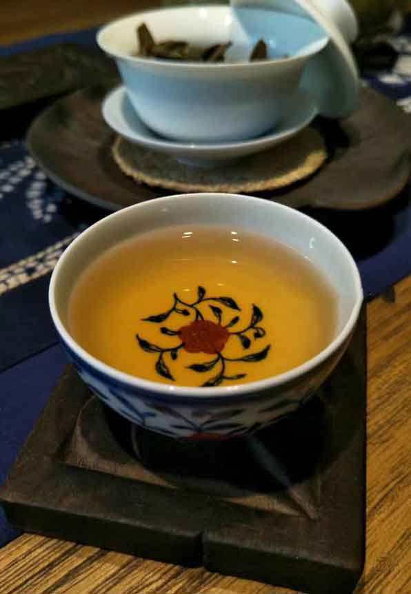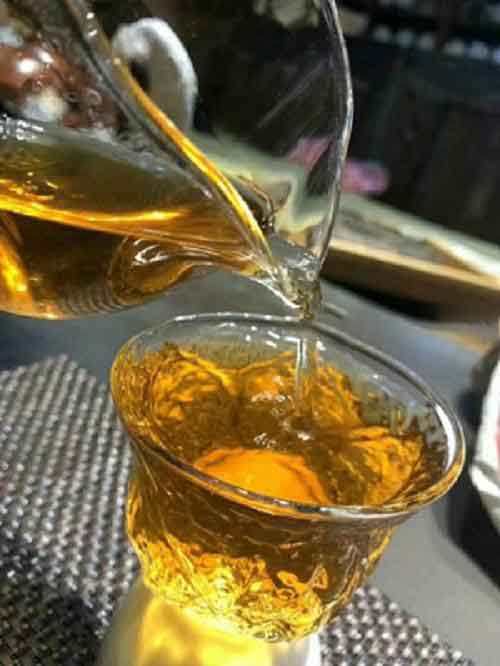 小玉笑著說,這款茶用的是冰島老寨600年樹齡古茶樹的頭春料子,一共做了不到10公斤,料子太珍貴,不敢讓徒弟們炒,都是小玉阿爸親手炒的茶。已經存放了3年了,現在還有四五公斤。平時是舍不得喝的,今天有遠客到訪,破例拿出來品嘗。